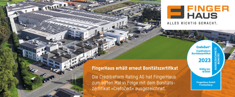 Die Creditreform Kassel bestätigte die ausgezeichnete Bonität und finanzielle Stabilität des Familienunternehmens, was für zukünftige Bauherren von großer Bedeutung ist. „Das Zertifikat belegt, dass wir solide wirtschaften, was das Vertrauen in unsere Arbeit stärkt und für Bauinteressierte ein wichtiges Kriterium bei der Auswahl des richtigen Baupartners ist", erklärt Dr. Mathias Schäfer, Geschäftsführer der FingerHaus GmbH. “Denn die Bauherren möchten sicherstellen, dass das Unternehmen auch in Zukunft am Markt bestehen bleibt und auch nach dem Einzug für Service und Verbindlichkeit sorgt."