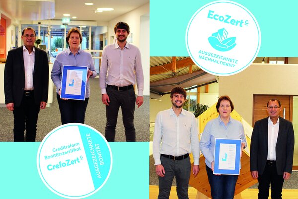 Bereits zum zweiten Mal kann die Haas Fertigbau GmbH mit Sitz im niederbayerischen Falkenberg einen doppelten Erfolg feiern. Als erstes deutsches Unternehmen wurde das Unternehmen zum zweiten Mal in Folge sowohl mit dem Nachhaltigkeitszertifikat EcoZert als auch mit dem Bonitätszertifikat CrefoZert ausgezeichnet. Haas Fertigbau mit Standorten in Deutschland (Falkenberg), Österreich (Großwilfersdorf) und Tschechien (Susice) beschäftigt rund 1.200 Mitarbeiterinnen und Mitarbeiter. Mit dem nachhaltigen Baustoff Holz und innovativen Fertigungsmethoden hat das Unternehmen rund 50.000 Bauprojekte erfolgreich realisiert und zählt mit einem Jahresumsatz von 250 Millionen Euro zu den Marktführern im Fertigbau.