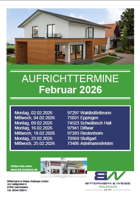 BITTERMANN & WEISS Aufrichttermine Februar 2026