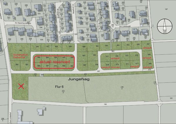 Die Erschließung ist gerade in vollem Gange: Die Zuwegung wird voraussichtlich bis Ende Oktober 2024 fertig gestellt sein, die vollständige Erschließung im 1. Quartal 2026. Somit kann ab Herbst 2024 mit der Bebauung gestartet werden. Planen Sie Ihr Traumhaus ganz nach Ihren individuellen Bedürfnissen mit einem Architekten oder mit einem Fertig- oder Massivhaus-Hersteller Ihrer Wahl. Ein Bebauungsplan für dieses Gebiet liegt bereits vor. Dieser lässt sich über diesen Link einsehen.