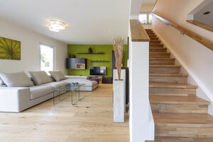 Natürliche Bodenbeläge erfüllen die hohen Anforderungen an Langlebigkeit, Trittschall und Pflegeleichtigkeit. Ein Holzboden hat zudem sehr gute Dämmeigenschaften und wirkt feuchtigkeitsregulierend. Holz lädt sich außerdem nicht statisch auf und zieht keinen Staub an. Aber auch Böden aus Kork und Linoleum schaffen eine angenehme Fußwärme, sind trittschalldämmend und hygienisch. Linoleum besteht aus natürlichen Materialien, wird mit emissionsfreien Acrylatbeschichtungen, Wachs und Öl bearbeitet. Das Naturprodukt Kork ist je nach Zusatzstoffen gesundheitlich unbedenklich und wirkt sich geölt sogar positiv auf das Raumklima aus. Bei Wandbelägen sollte man sich vorab vor allem bei der Verwendung von Farben und Lacken über die Inhaltsstoffe informieren. Denn organische Lösemittel belasten als flüchtige organische Verbindungen (VOC) nicht nur die Umwelt, sondern auch die Gesundheit. Wasserlösliche Produkte ohne organische Lösemittel sind hier risikoärmer.