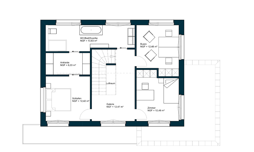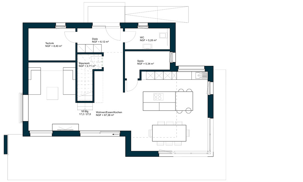 Das Musterhaus München reiht sich in die Produktlinie CLASSIC ein und bietet die Neuinterpretation eines Klassikers. Stil und Geborgenheit, Design und Tradition - vereint unter einem Satteldach. Große Fenster, Übereckverglasungen und ein moderner Wintergarten holen die Natur in ihr Zuhause. Die überdurchschnittlichen Raumhöhen von 2,72 m und ein offenes Raumkonzept lassen Sie frei durchatmen und bieten Raum für die Verwirklichung all Ihrer Träume - die genaue Aufteilung der Räume legen Sie selbst fest und schaffen Platz für alles, was zu Ihrem Leben gehört.