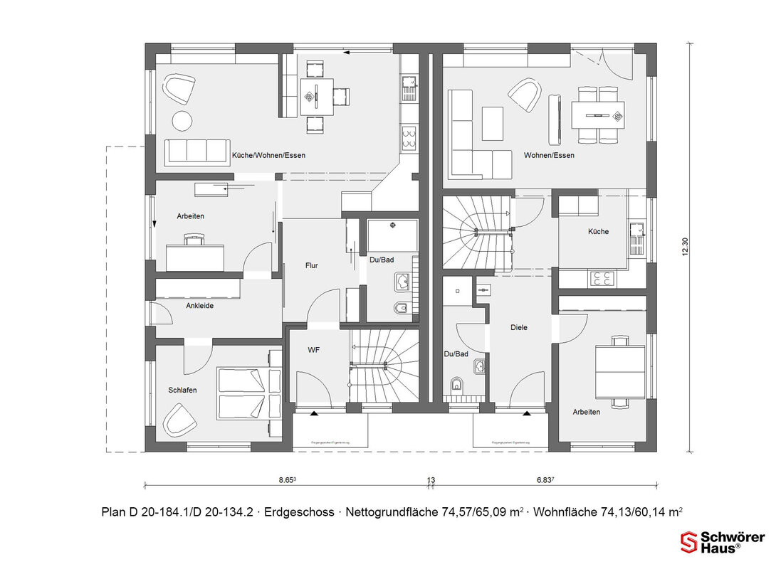 | Wohnfläche Erdgeschoss | 74,13/60,14 m² m² |