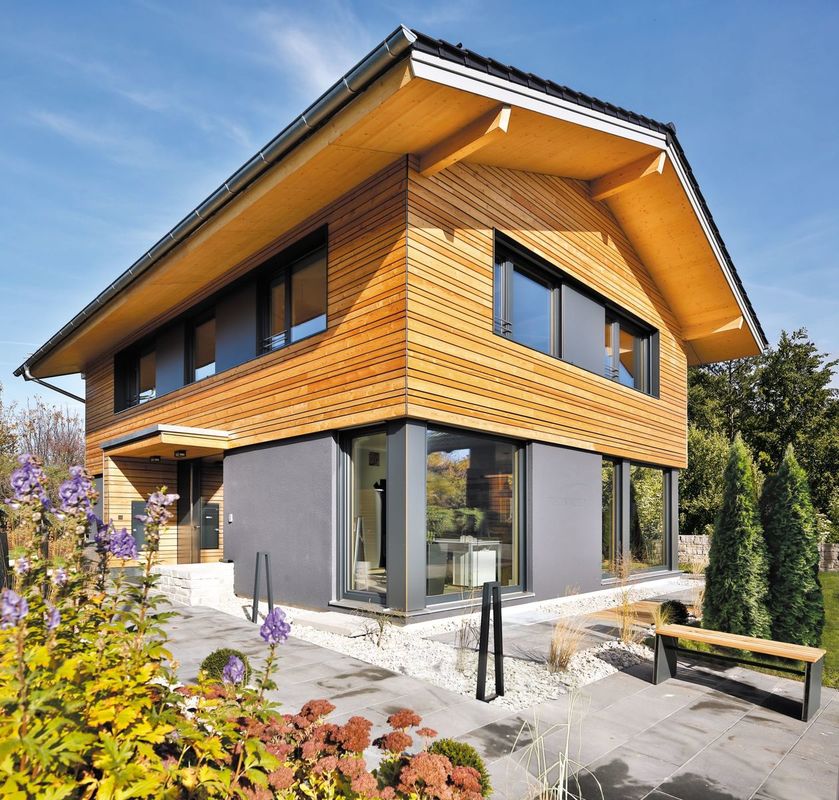 Schlicht, elegant und gleichzeitig hochmodern: Das neue Regnauer Musterhaus Heidi verbindet die Gemütlichkeit und Ruhe eines Holzhauses mit der zukunftsweisenden Ausstattung und Technik wegweisender Architektur.