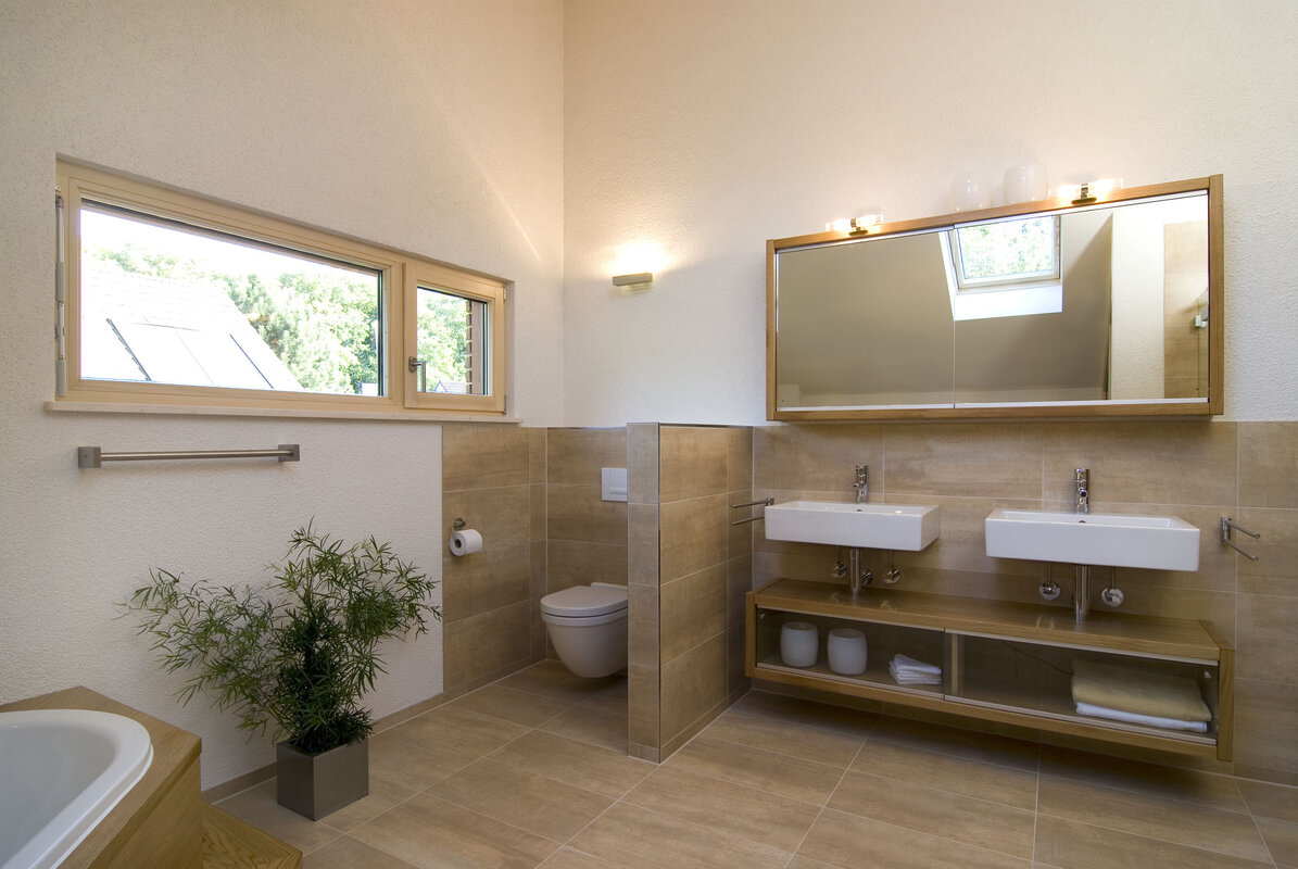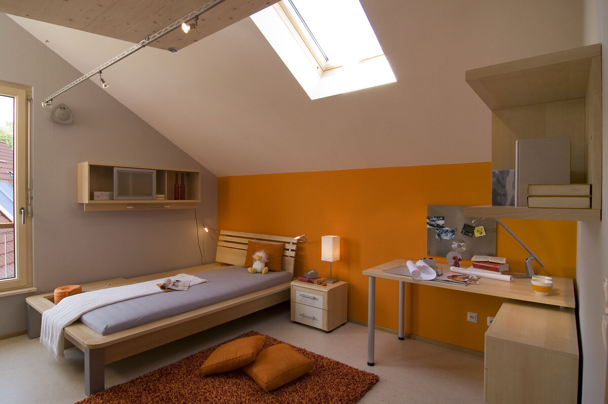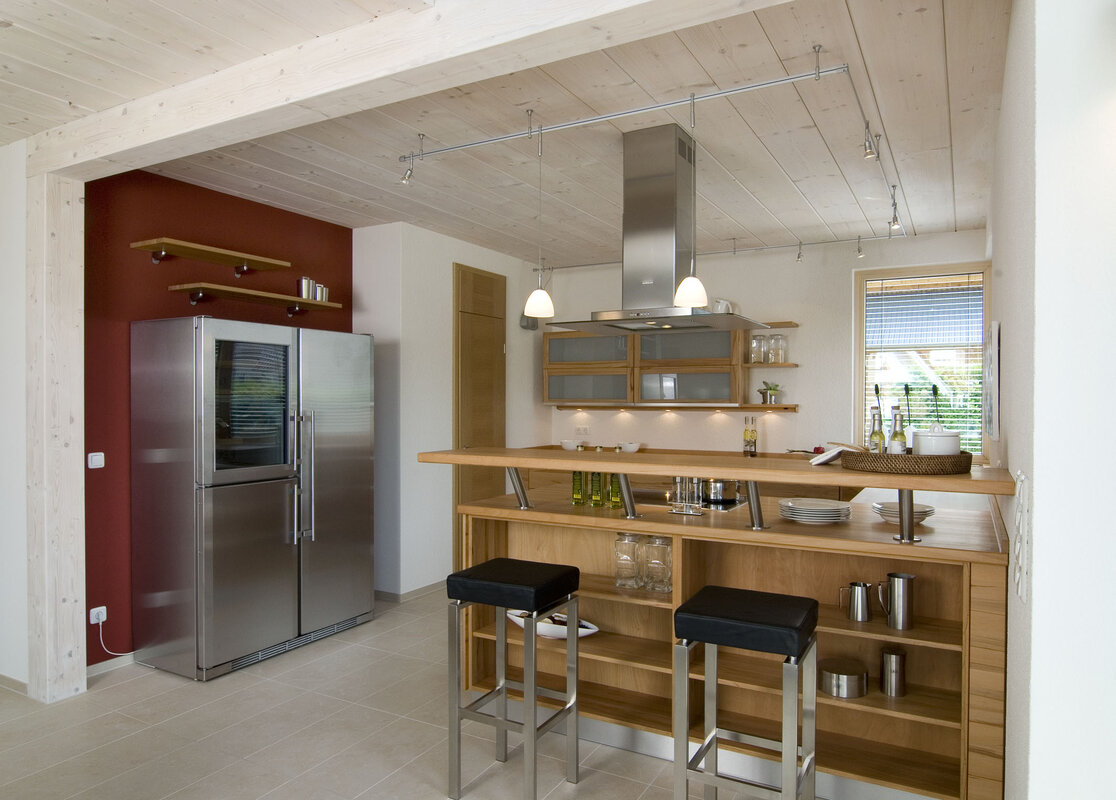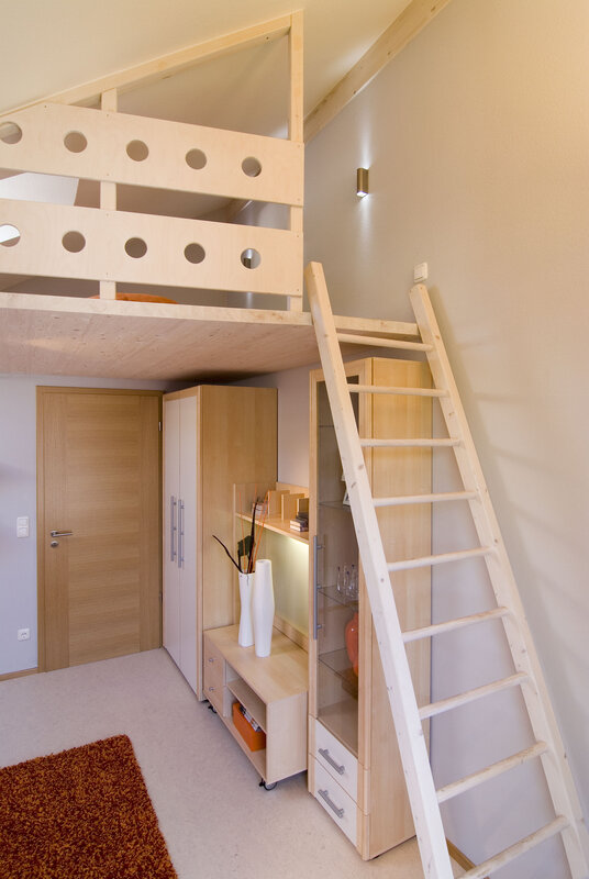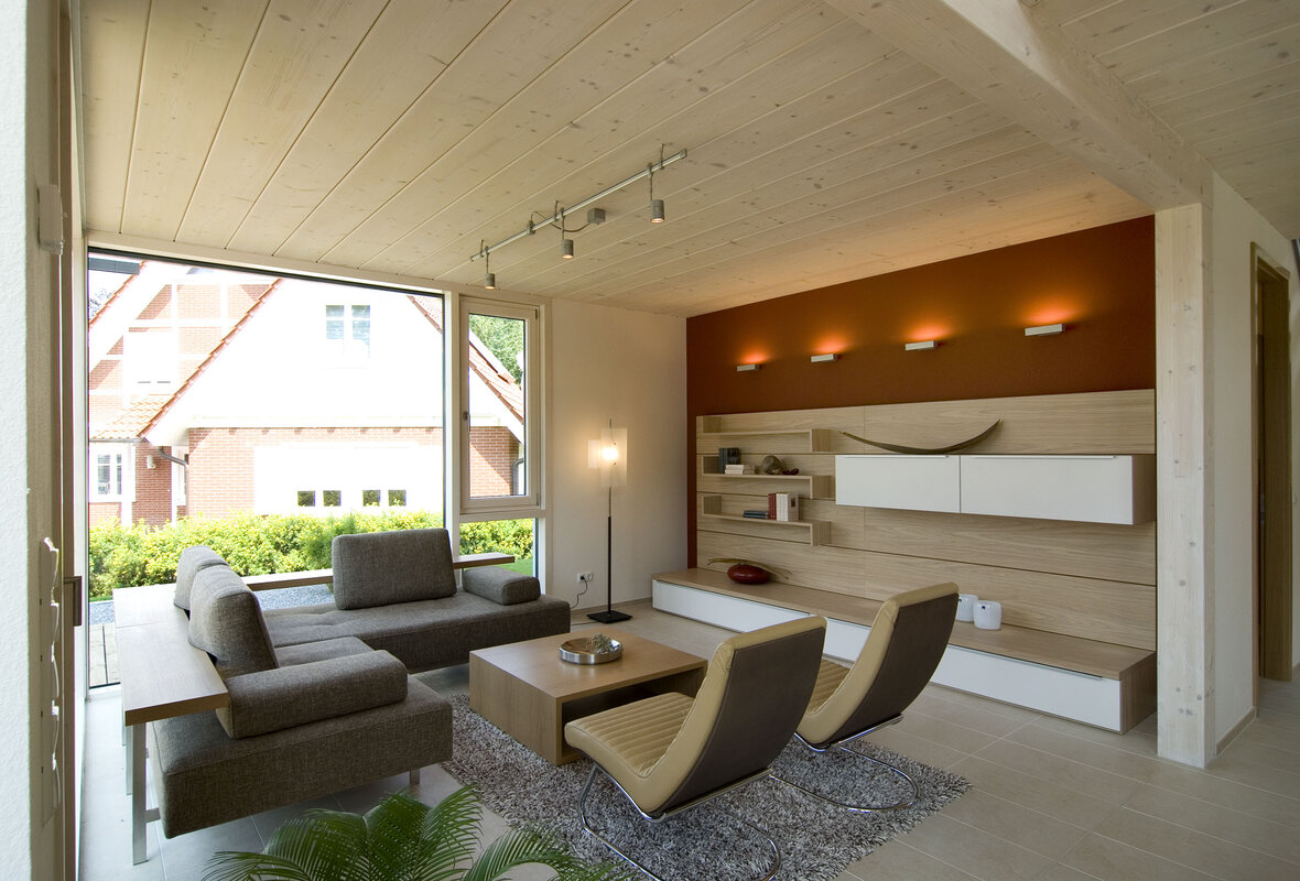 Die umweltfreundlichen „Ökowände“ erzeugen ein wohngesundes Raumklima, in dem es sich unbeschwert leben lässt. Für Behaglichkeit sorgen glatte Holzflächen im Hausinnern.