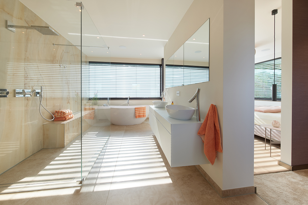 LUXHAUS | core. ist ein extravagantes Familienhaus, in dem Komfort großgeschrieben wird. Ein modernes Refugium, in dem Rückzug unter hellen, lichten und offenen Bedingungen stattfinden kann.