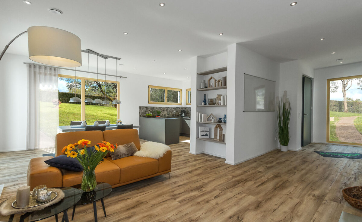 Und noch Eines kann dieses Haus: Es kann zum Zweifamilien- oder Apartmenthaus werden. Mit einem gemeinsamen Hauszugangsbereich bietet dieses Haus zwei ansprechenden Apartmentwohnungen mit ca. 70 Quadratmeter Wohnflächen. Auch Wohnen und Arbeiten ist mit den angebotenen Hausergänzungen möglich. Hier gibt es verschiedene Gestaltungsvarianten, sei es für den eigenen Home Office Bereich, einer möglichen Ferienwohnung, einen familiennahen Bereich für die Eltern oder ein Apartmentbereich für eine Pflegekraft. Es ist ein flexibles Raumkonzept, welches den Anforderungen des Lebens Rechnung trägt.