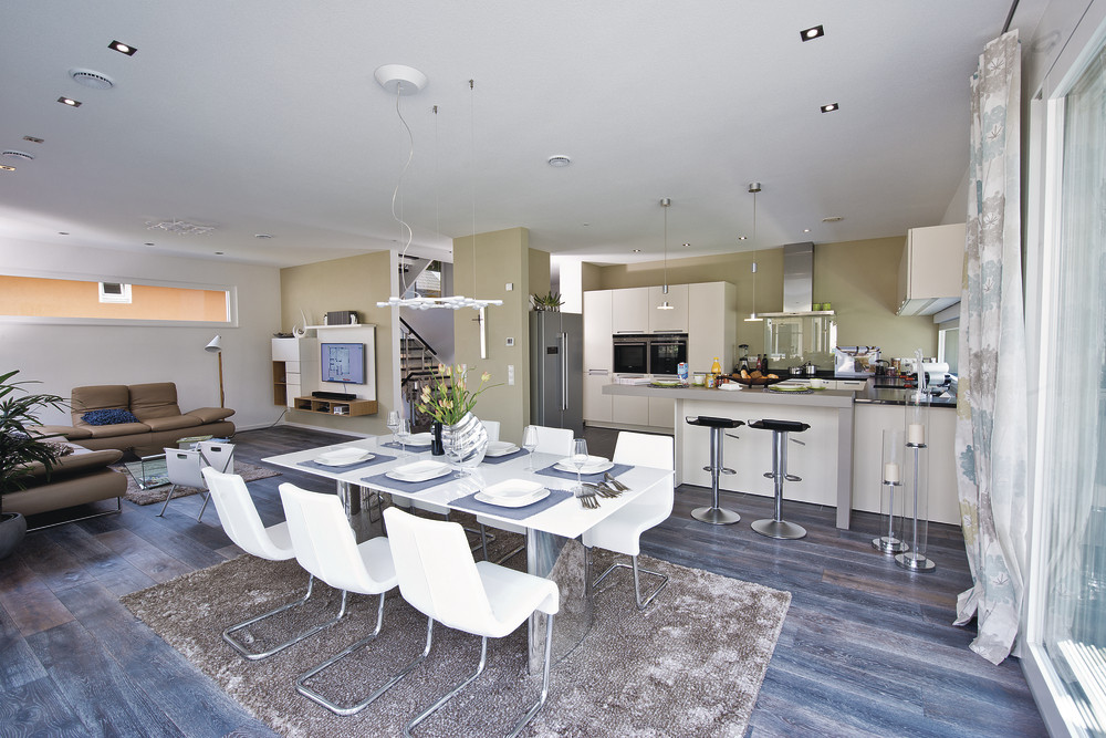 Ob Architektur, Platzangebot oder energetische Ausstattung – das WeberHaus-Ausstellungshaus generation5.0 punktet in allen Bereichen. So verfügt das Einfamilienhaus dank seiner zweifarbigen Außengestaltung nicht nur über moderne und stilvolle Optik. Es bietet auf mehr als 180 qm Wohnfläche Platz für die ganze Familie. Das Erdgeschoss (ca. 95 qm) bietet mit extra hohen Räumen (267 cm) eine großzügige Wohnatmosphäre. Über die Empore gelangt man in das ca. 85 qm große Dachgeschoss. Das Elternschlafzimmer wir durch eine Ankleide ergänzt. Es stehen außerdem drei fast gleichgroße Zimmer zur Verfügung, die flexibel genutzt werden können.