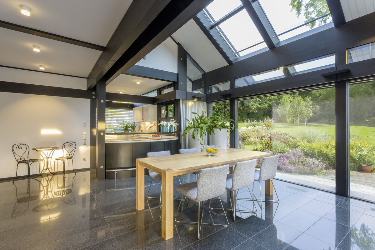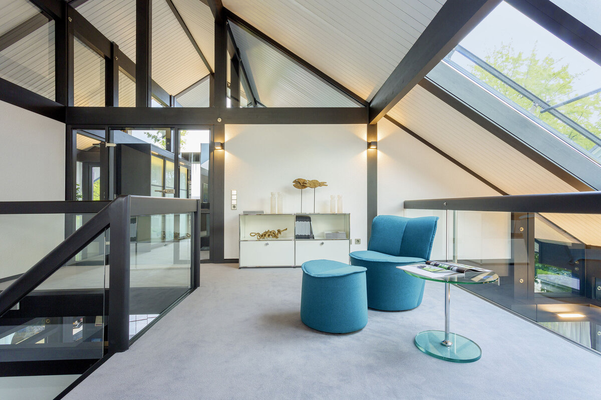 Inspiriert vom Bauhausstil überzeugen die Architektenhäuser von HUF HAUS mit klaren Formen und sichtbaren Konstruktionselementen. Fachwerk und Glasflächen vereinen sich zu einer zeitlos modernen Architektursprache und lassen großzügige, offene Lebensräume entstehen.