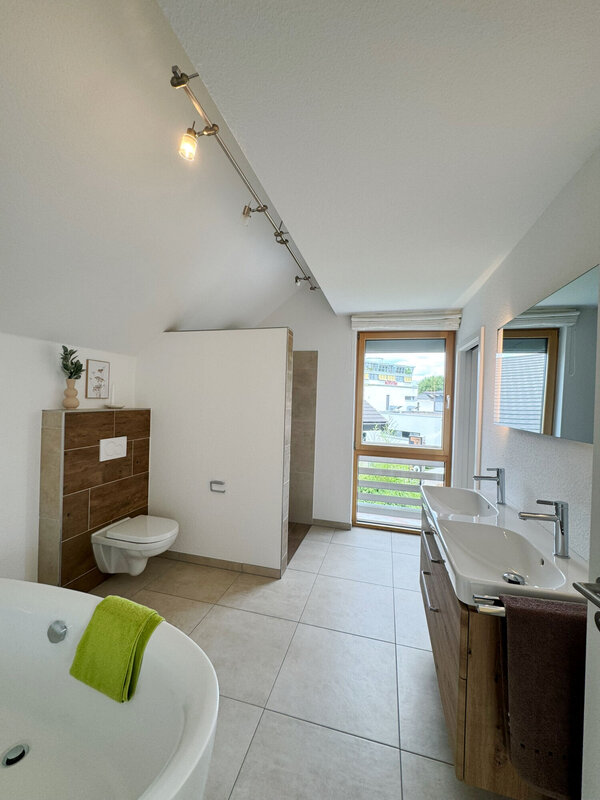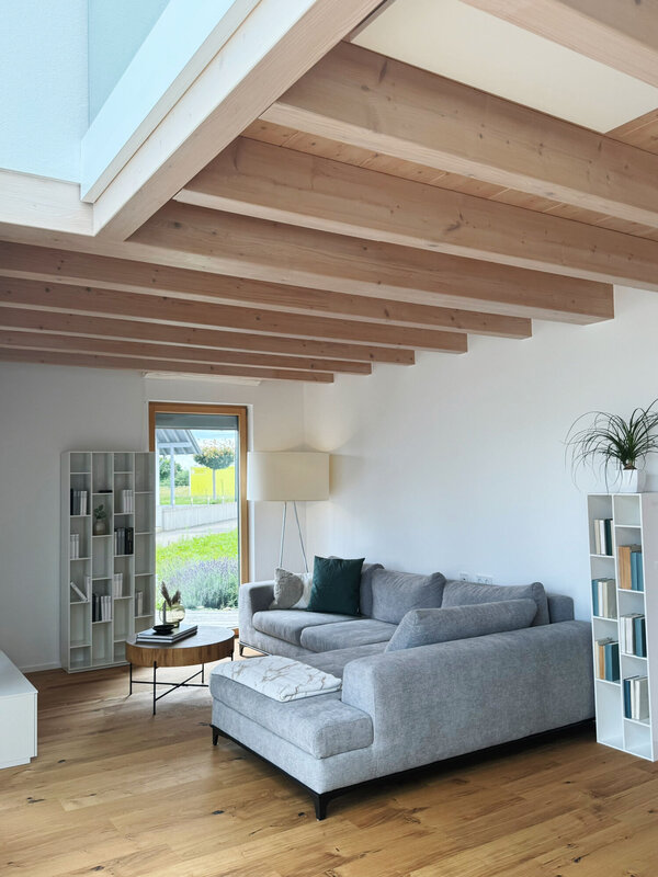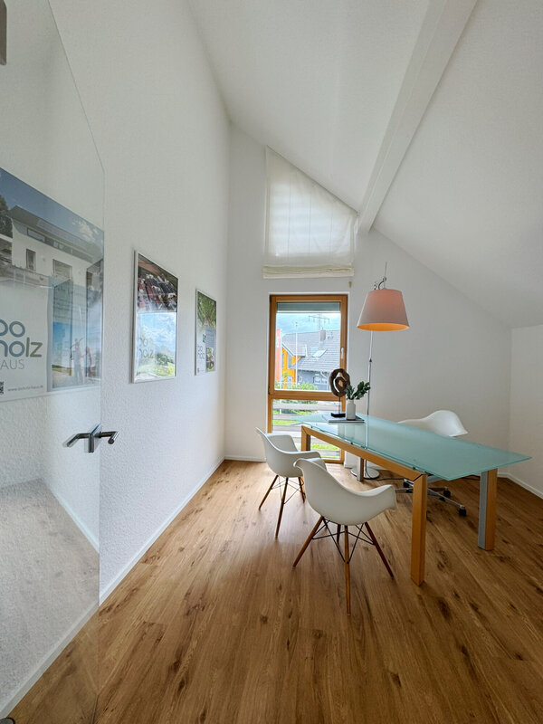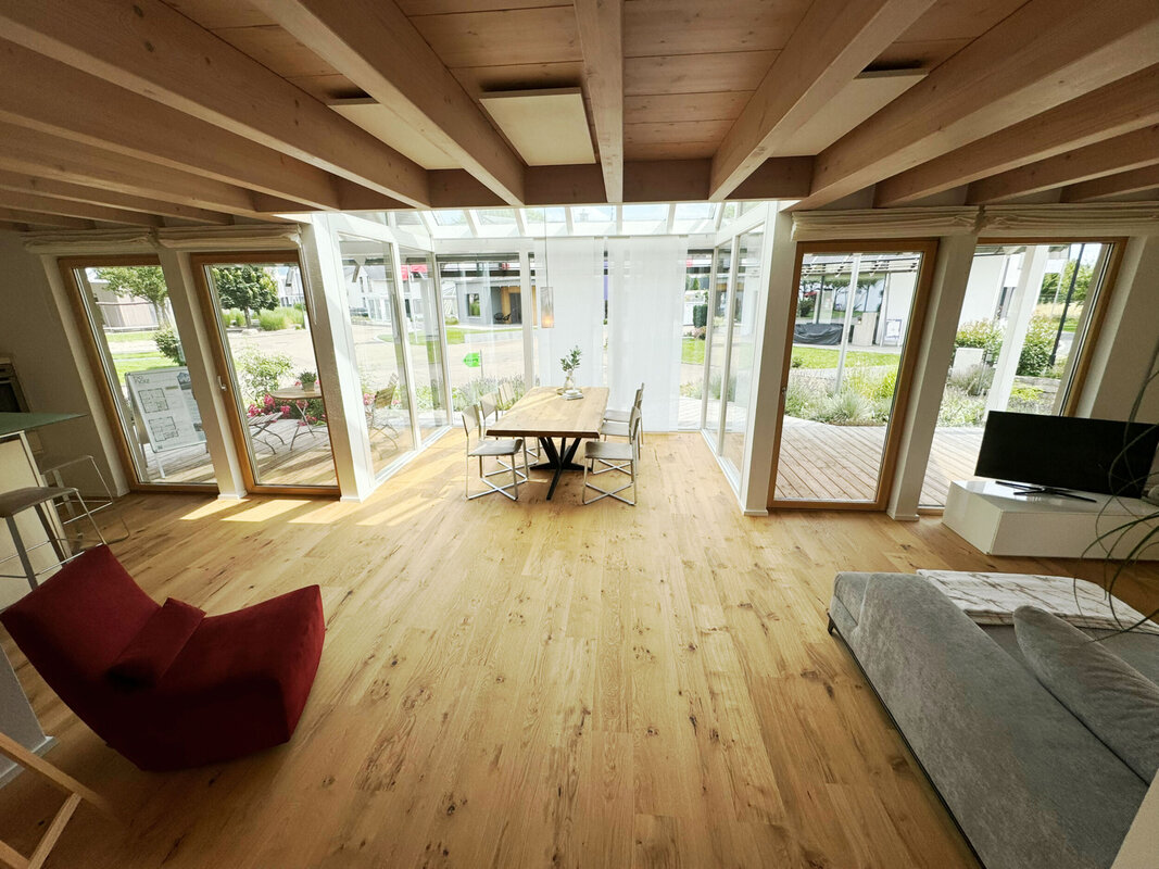 Nahe Stuttgart zeigen wir Ihnen den Charme unseres Musterhauses mit verglastem Wintergarten und licht-durchfluteter Galerie. Ganz besonders liegt hier das Augenmerk auf der sichtbaren Holzbalkendecke, die einem Haus nochmal ein ganz neues Wohngefühl gibt.