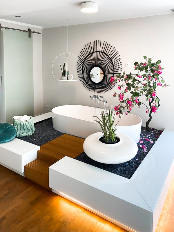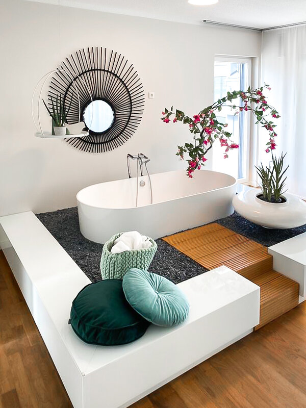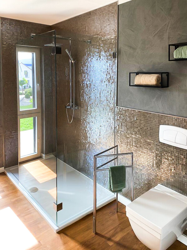 Mit einem Homeoffice der Extraklasse, als Anbau mit eigenem Zugang für Kundschaft, aber auch vom Wohnhaus aus erreichbar. Zwei Bäder im Obergeschoss, eines davon sogar mit Badewanne im Schlafzimmer, und eine offene Galerie gehören ebenfalls zu den sehr schönen Details dieses Wohnkonzeptes.