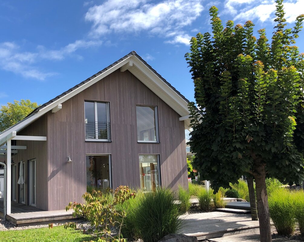 Willkommen Zuhause! Wahre Schönheit steckt im Charakter und im Detail Ihres persönlich geplanten Hauses. Dieses versucht Lehner [Haus + Architektur] Ihnen mit diesem Vorzeigehaus zu verdeutlichen. Liebe zum Holz und Werthaltigkeit in den verwendeten Materialien lassen dieses sehr variable und auf den ersten Blick einfach wirkende Haus zu etwas Besonderem werden. Querlüftung, Lichtdurchflutung und emotionales Wohlbefinden sind durch die offenen aber dennoch strukturierten Räume sinnvoll geplant und bewusst umgesetzt worden. Architektur für die Seele und Materialien für ein gesundes Raumklima gehören für uns zusammen. Deshalb ist unsere diffusionsoffene Holzwand mit Holzdämmung kein ökologisches Extra sondern ganz selbstverständlich.